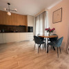 Bucătăria este echipată cu electrocasnice moderne și încorporate, inclusiv masina de spălat vase, creând un spațiu funcțional și stilat.