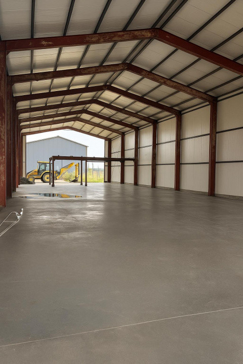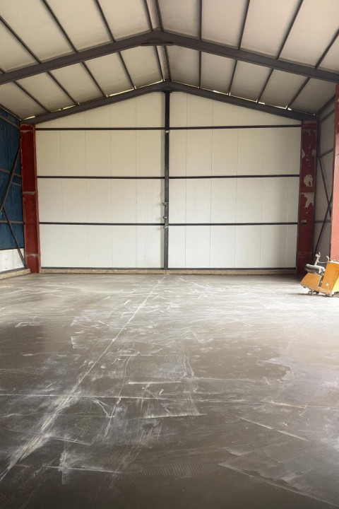 Pardoseala este din beton armat elicopterizat, foarte solidă, potrivită pentru trafic industrial intens sau utilaje grele.